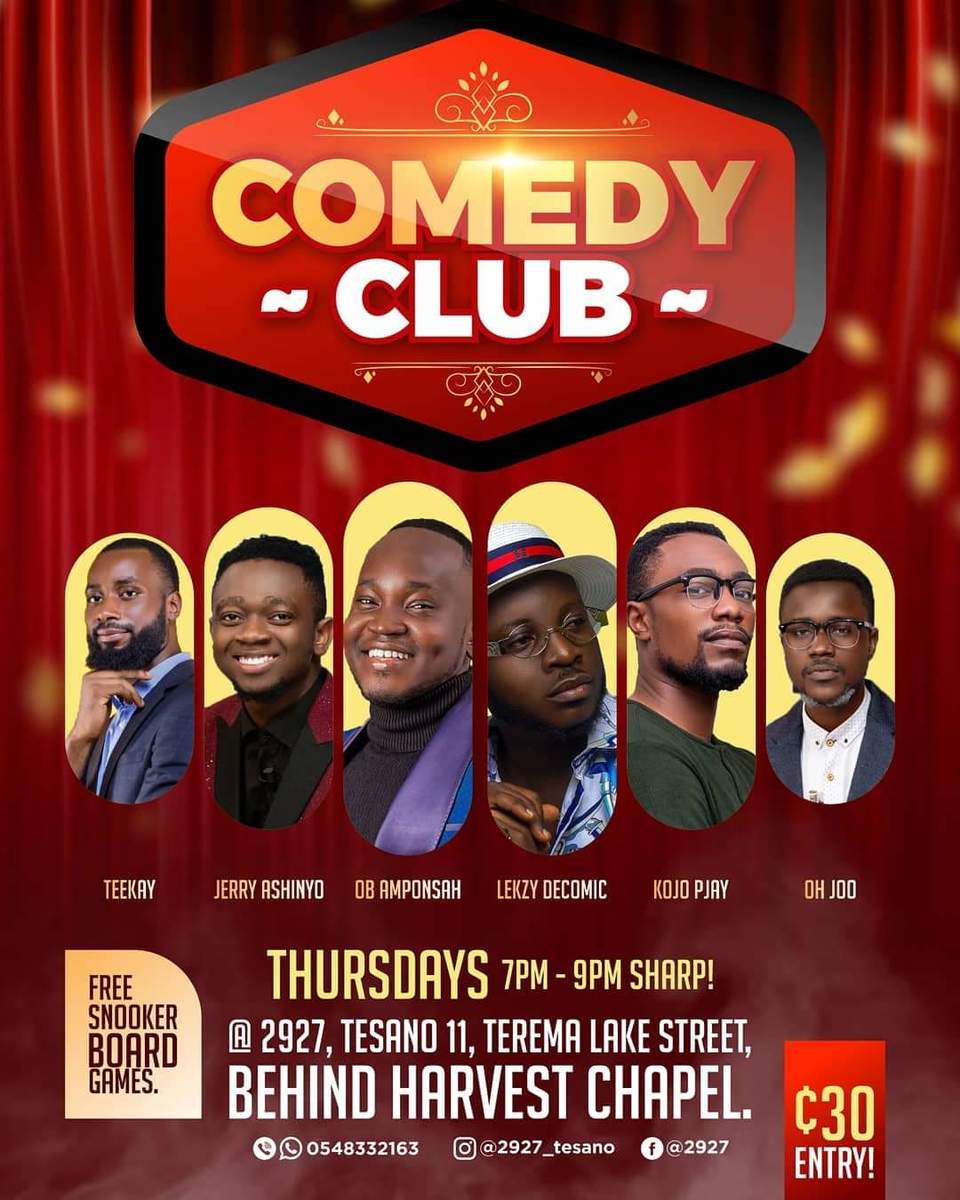Great News! 😍 2927 (Two Nine Two Seven)] is officially starting a COMEDY CLUB this Thursday😍. Your favorite serene and family-friendly hangout space this Thursday will be featuring the finest comedians in Ghana. It’s time to laugh out loud 😂 and release some stress. Get your friends and loved ones on board.