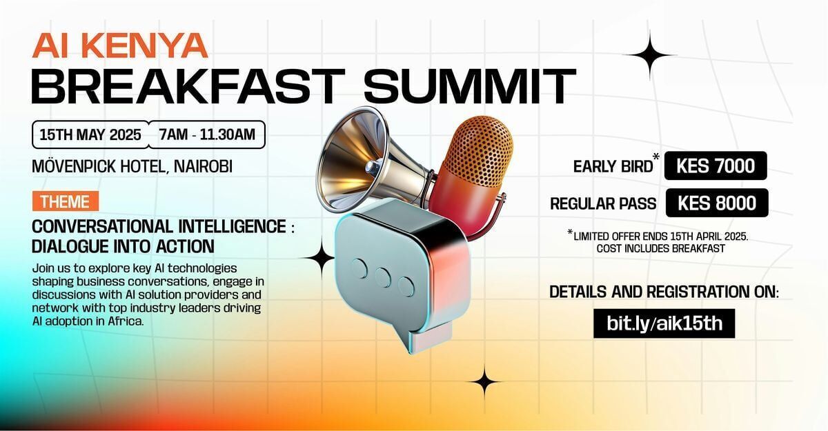 Join us for the 2nd edition of the Ai Kenya Breakfast Summit! This exciting event will bring together over 150 industry decision-makers, AI builders, and businesses to explore the fascinating world of Conversational Intelligence. Discover how AI is transforming conversations in business and beyond.