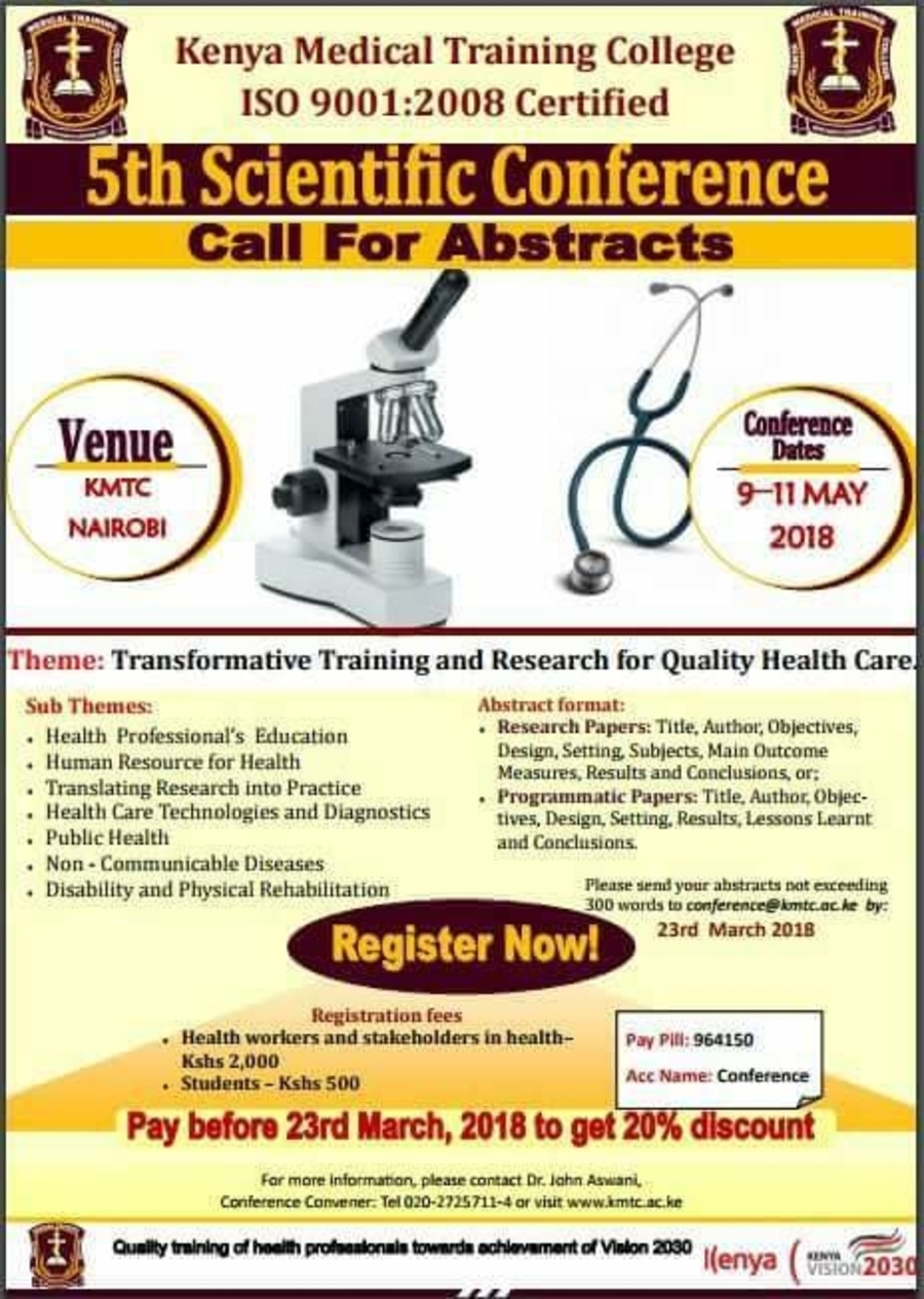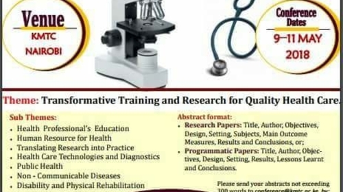 Those interested in making presentations during the conference are asked to send an abstract of not more than 300 words to conference@kmtc.ac.ke before 9th March 2018.
