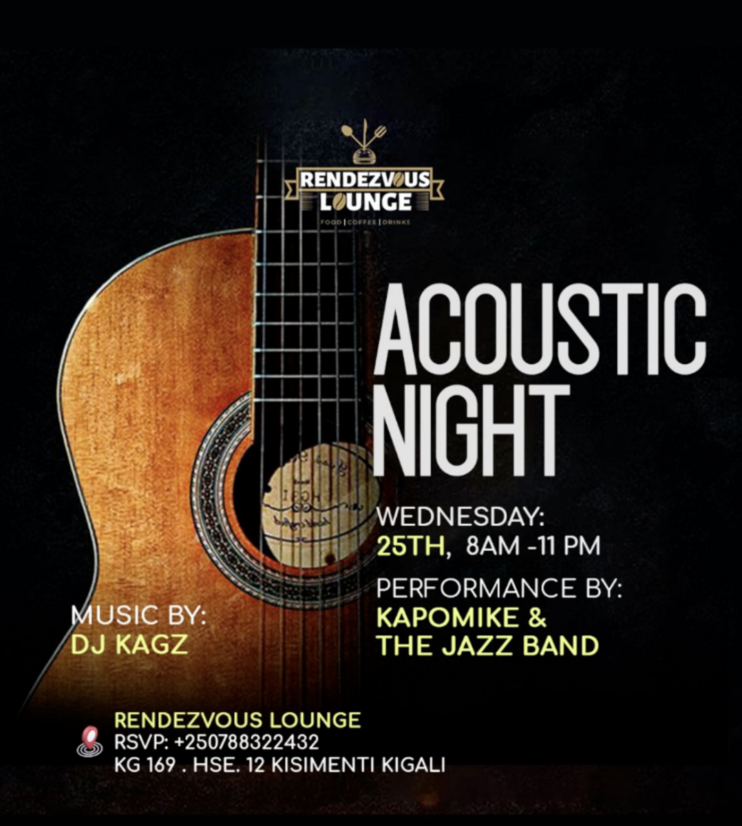 Get ready to unwind this Wednesday, June 25th from 8 PM to 11 PM at the Rendezvous Lounge for a soul-soothing Acoustic Night. Featuring the talented Kapomike & the Committed Jazz Band and the incredible DJ Kagz spinning the decks, this event is set to deliver good vibes and great music.