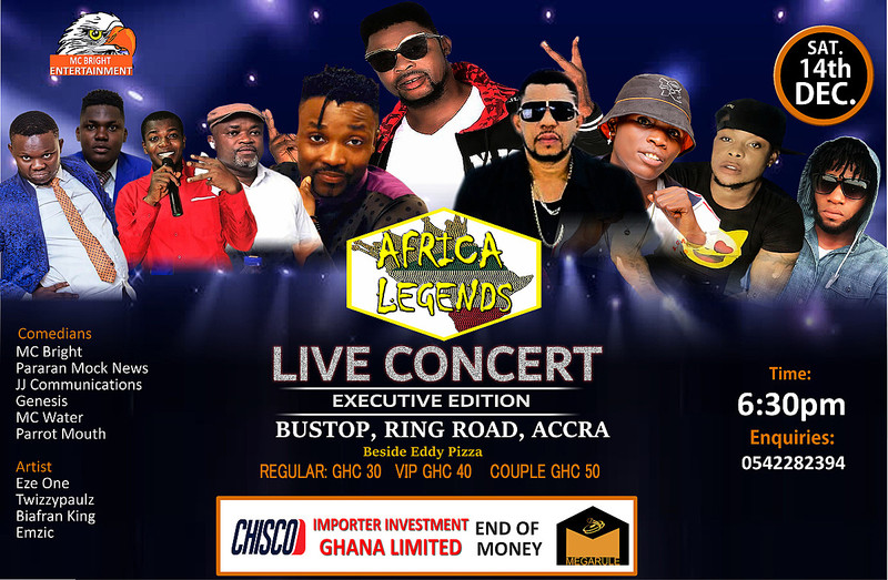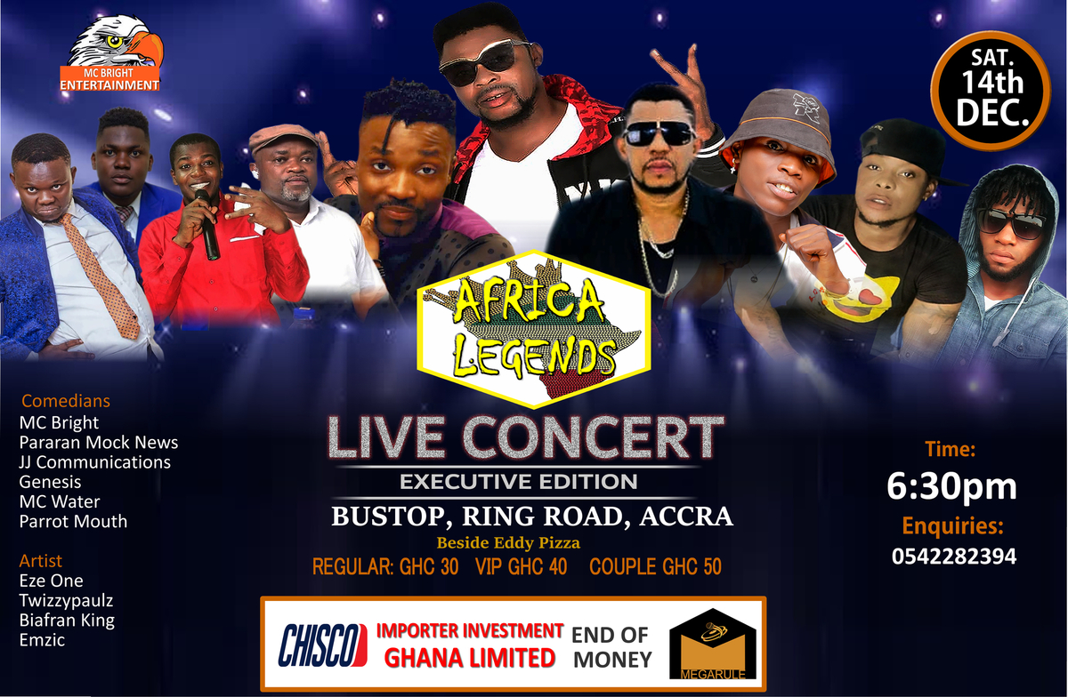 AFRICA LEGENDS LIVE CONCERT is an executive and award night live convert that will bring together international artists (Musician and Comedians) from all Africa to Accra Ghana.