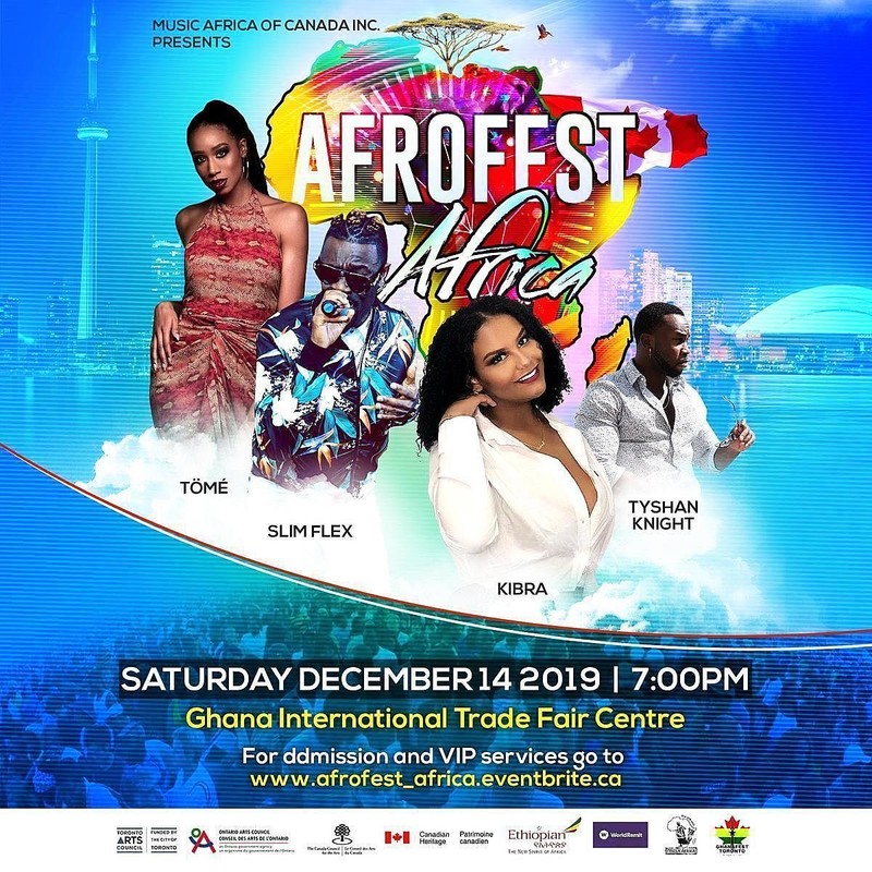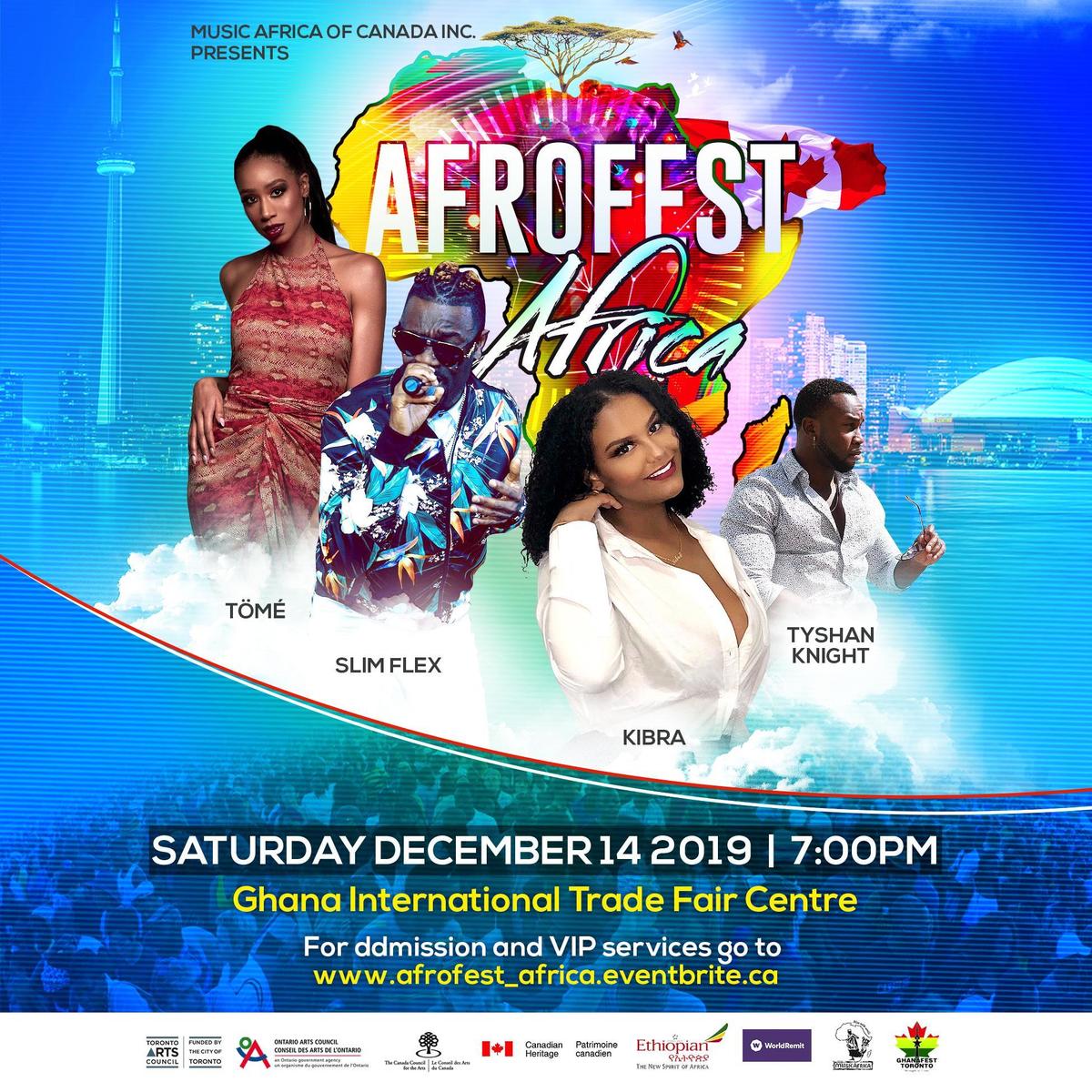 AFROFEST comes to Ghana featuring TOME (Nigeria), Tyshan Knight (Jamaica), Slimflex (Ghana) and Kibra (Eritrea) from Canada .