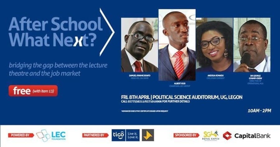 After School What Next storms UG campus tomorrow. Event is free. Be sure to be there! Theme: "Bridging the gap between the lecture theatre and the job market