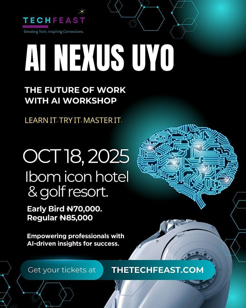 🚀 Discover how AI is shaping the future of work at AI Nexus Uyo – an event you don't want to miss! Learn, try, and master the transformative power of Artificial Intelligence (AI).