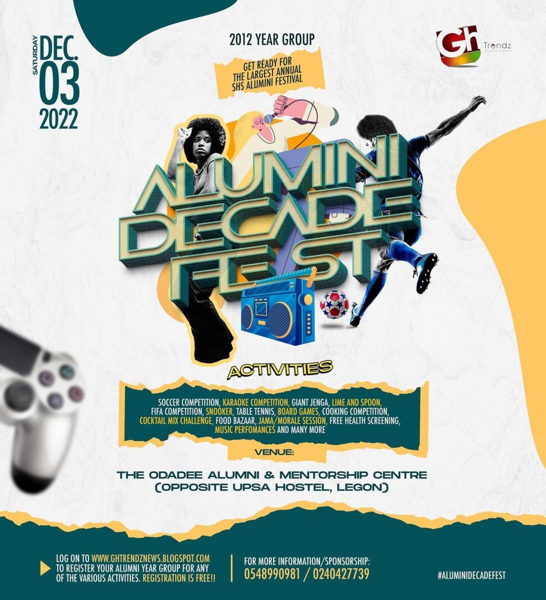 Alumni Decade Festival (Fest), is an annual event aimed at bringing together Alumni of all senior high schools in Ghana, who graduated exactly Ten (10) years ago (Decade).