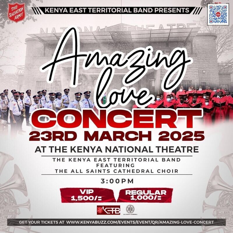 Join us for an unforgettable evening filled with soul-stirring music and performances by the renowned Kenya East Territorial Band alongside the exceptional All Saints Cathedral Choir. This concert promises to be a captivating experience that will touch your heart and uplift your spirit. Don't miss out on this chance to witness a celebration of love through the art of music! πΆβ€οΈ