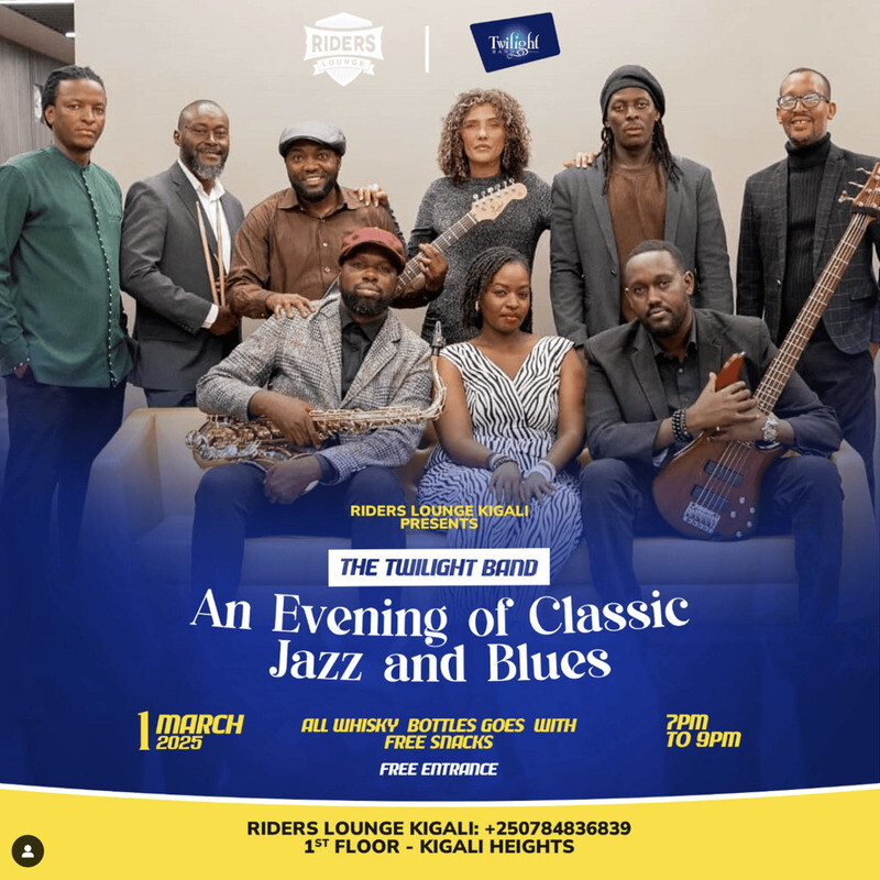 Join us at Riders Lounge in Kigali this March for a captivating performance by The Twilight Band.