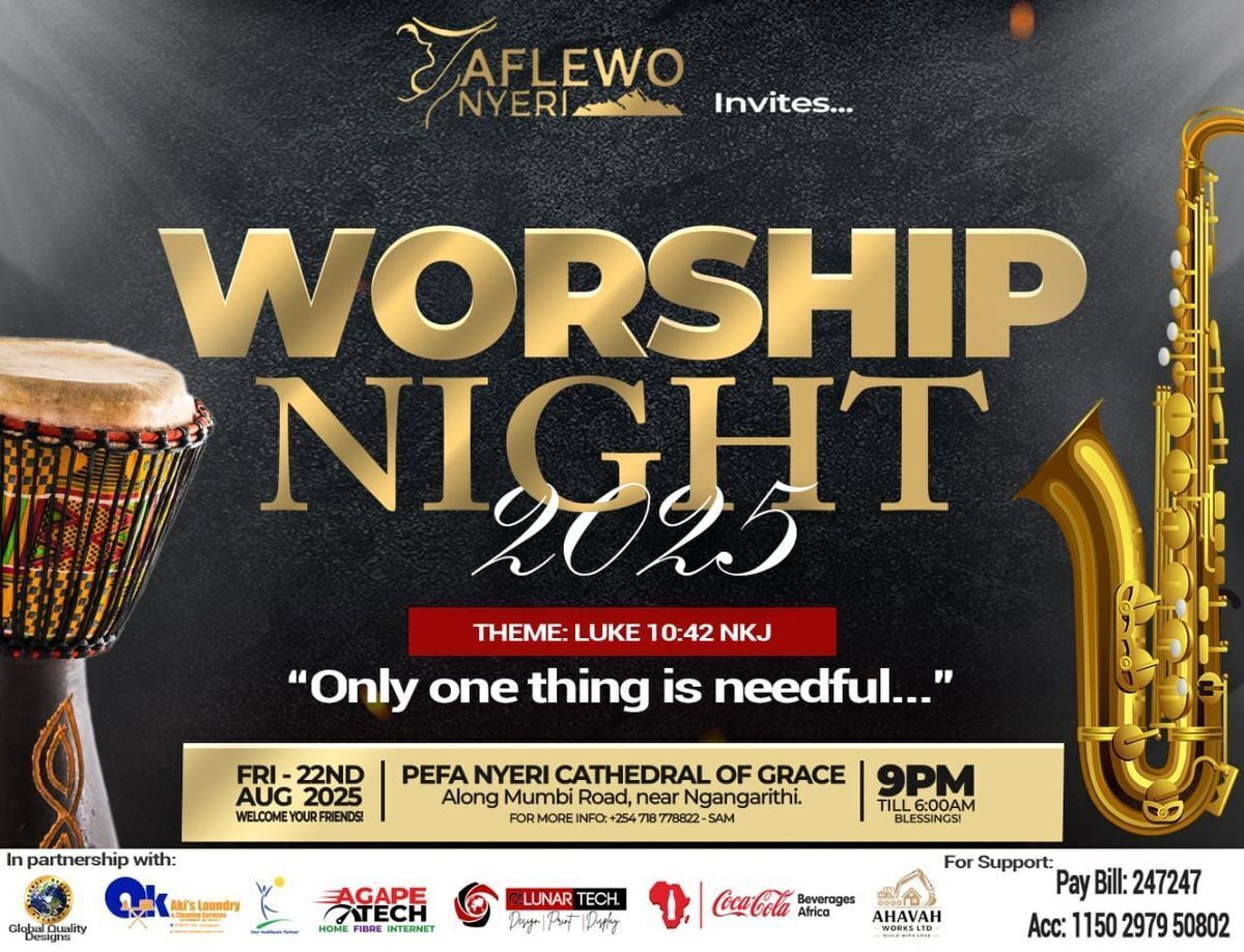 Join us for a powerful night of worship and spiritual renewal at the Annual Worship Night. Experience uplifting praise, heartfelt prayers, and a vibrant community coming together to honor the divine. πΆπ Whether you're seeking spiritual growth or simply want to enjoy an evening of praise, this event promises an inspiring atmosphere filled with joy and reverence. Come as you are and let your spirit be renewed in the presence of God. Hallelujah! β¨