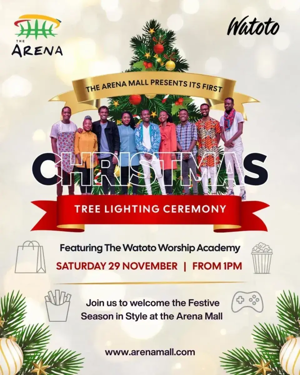 Kick off the festive season with a magical experience at the Arena Mall! Witness the Christmas tree lighting ceremony, a heartwarming tradition that brings the holiday spirit to life. Featuring an enchanting performance by the Watoto Worship Academy, this event promises a delightful celebration of community and joy. Gather with loved ones for an unforgettable moment as the tree illuminates the night.