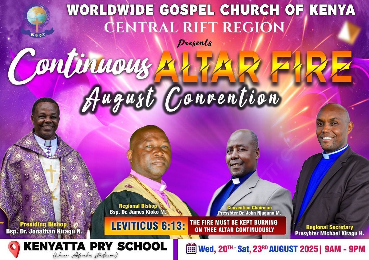 Join us for the AUGUST CONVENTION, a significant gathering in the Central Rift Region that brings together community members, leaders, and enthusiasts for a series of inspiring sessions, cultural displays, and networking opportunities. This event is designed to foster unity and celebrate the vibrant culture of Nakuru and beyond. Expect engaging activities, motivational talks, and a chance to connect with like-minded individuals. Whether you're a local resident or visiting from afar, this convention promises a memorable experience filled with learning, inspiration, and community spirit! ๐โจ