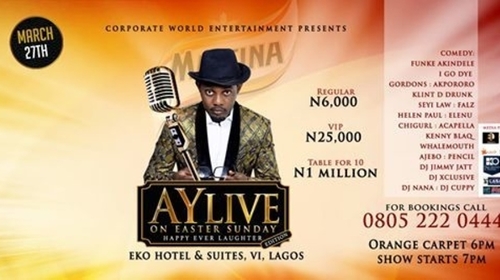 Its AY Live on Easter Sunday, March 27, At the Convention Centre ,Eko Hotel and Suites