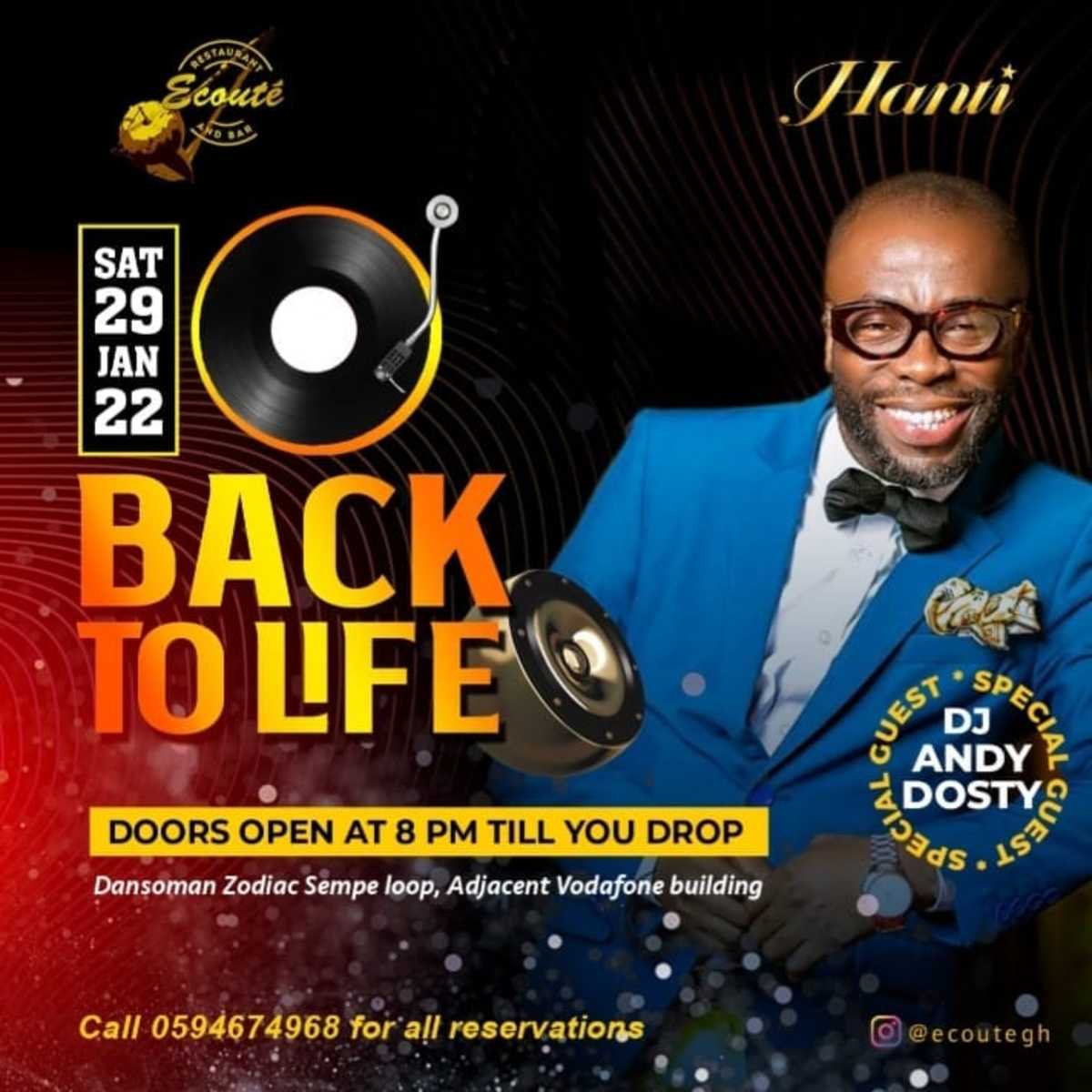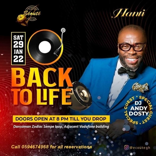 @andydostygh is ready to serve us the very best of back2back old school hits as we party and vibe all night long at our newly open bar and restaurant in Dansoman on Saturday 29th January, 2022