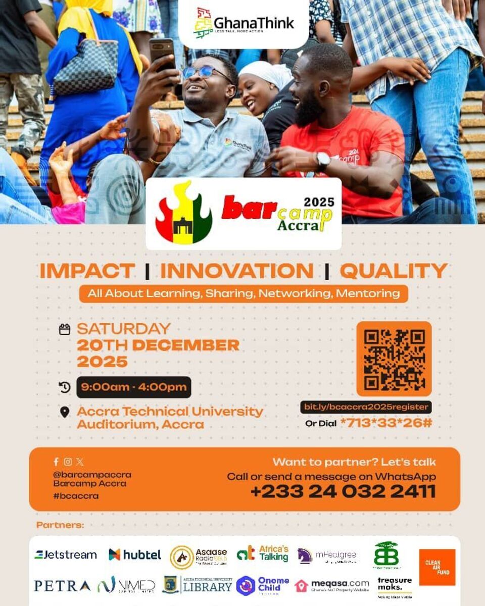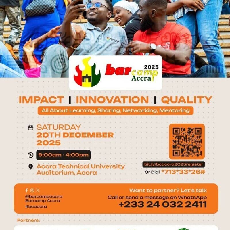 Barcamp Accra 2025 is a free networking forum bringing people together for a day of learning, sharing, networking and mentoring. The theme is "