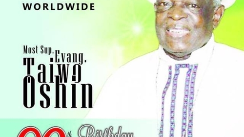 YOU ARE CORDIALLY INVITED TO JOIN OUR FATHER IN THE LORD MOST SUPERIOR TAIWO OSHIN TO GIVE THANKS TO GOD FOR CELEBRATING HIS 90TH BIRTHDAY.