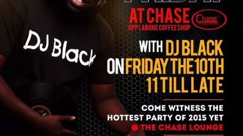 DJ Black comes to Chase Lounge once again on the 10th of April 2015!!. Its a party you do not want to miss!! Dress Code: Classy Trendy with a Touch of Black