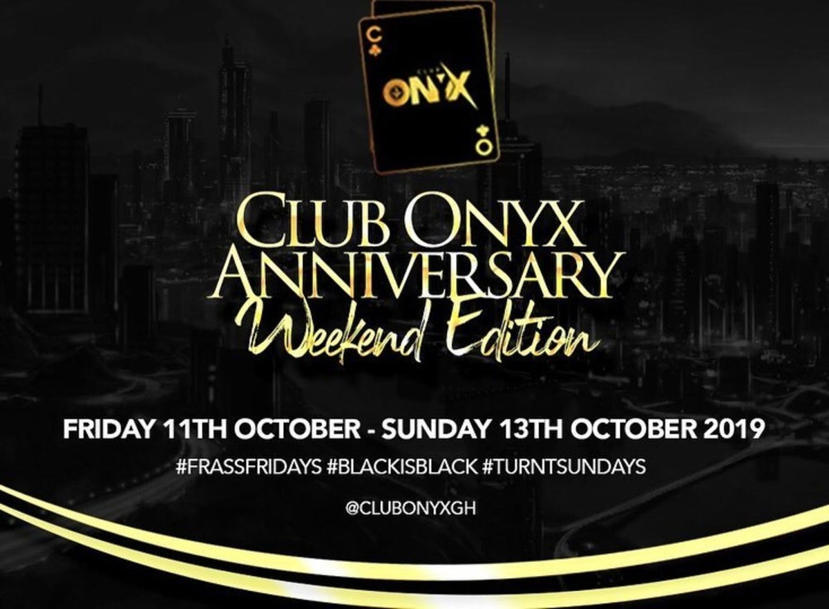 The Club Onyx Anniversary Weekend 11th - 13th October 2019 is about to be Accra’s Biggest Nightlife Takeover with the biggest acts, movie stars, DJ's and dancers from Ghana and flying in from Nigeria for this epic weekend!!