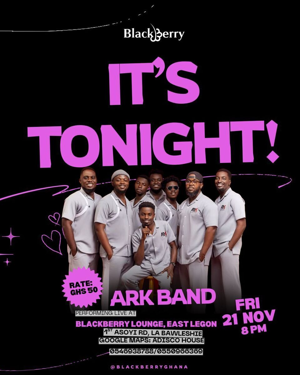 Ark Band of TV3 fame is performing live tonight at the BlackBerry Lounge, East Legon.🎷🎺