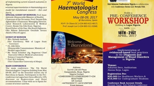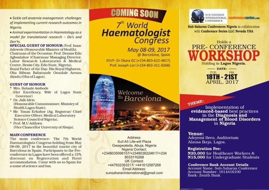 Sub-Saharan Conferences Nigeria in collaboration with Conference Series LLP Nevada USA holds a Pre- Conference Workshop on Blood Disorders Holding in Lagos Nigeria.