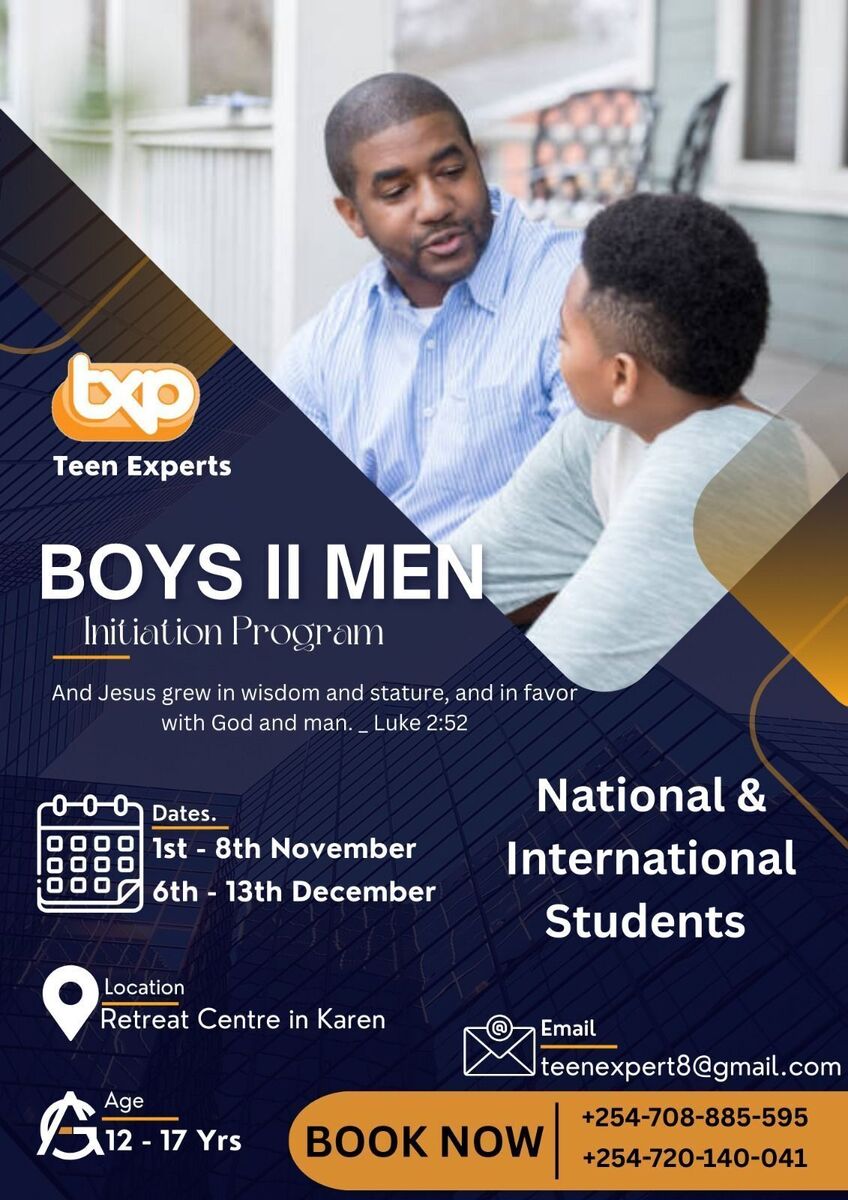 π Embark on a journey of independence and personal growth! Teen Experts is hosting the BOYS II MEN - INITIATION PROGRAM, a mentorship initiative designed to guide young boys towards becoming great men in society. This engaging program offers valuable insights, life skills, and mentorship to help nurture the next generation of leaders. Join us in empowering boys to walk confidently on the path of independence and excellence! π