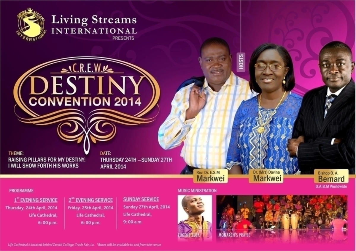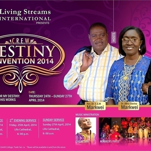 This year's C.R.E.W Destiny Convention promises to life-changing, electric and soul-inspiring. Join the saints as we gather in God's presence to raise pillars for our destinies as we show forth God's works.