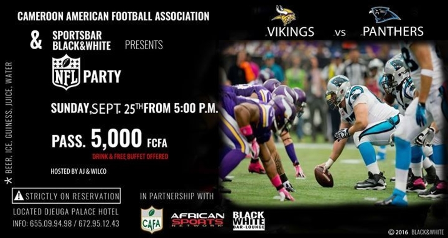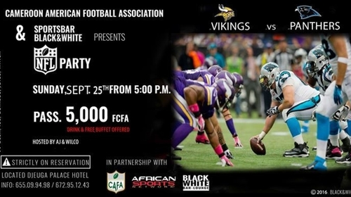 In it's objectives to promote social and cooperatives ties in the Yaounde business and sports community, the Cameroon American Football Association in partnership with Sports Bar Black & White will be hosting a network event which will feature a live broadcast of the NFL Minnesota Vikings vs Carolina Panthers. It is worth mentioning it is the first time such a sports and leisure business networking event will be taking place in Yaounde, Cameroon.