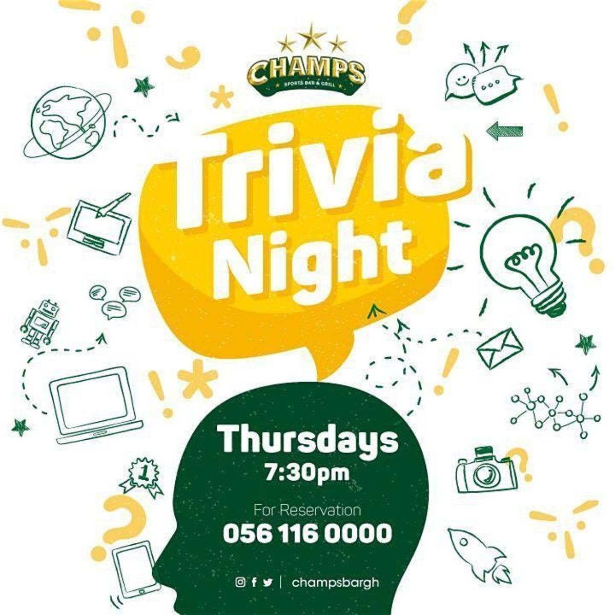 Nothing serious, just Trivia with Otu (Mister_Otu) every Thursday. Loads of prizes to winning teams and you can redeem your 20 Cedi Entry Coupon once you're inside!