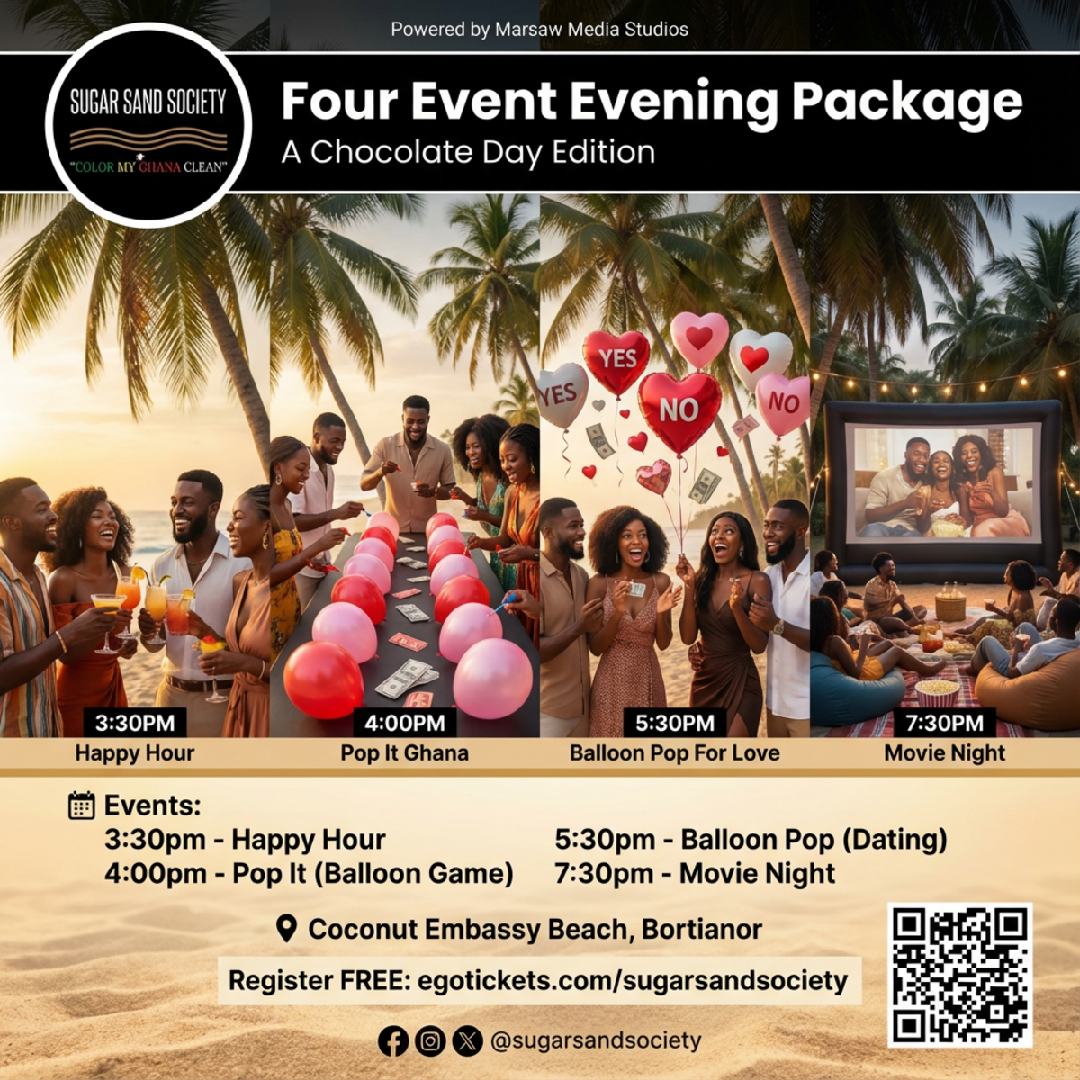 Four Event Evening Package: Games Laugh & Love