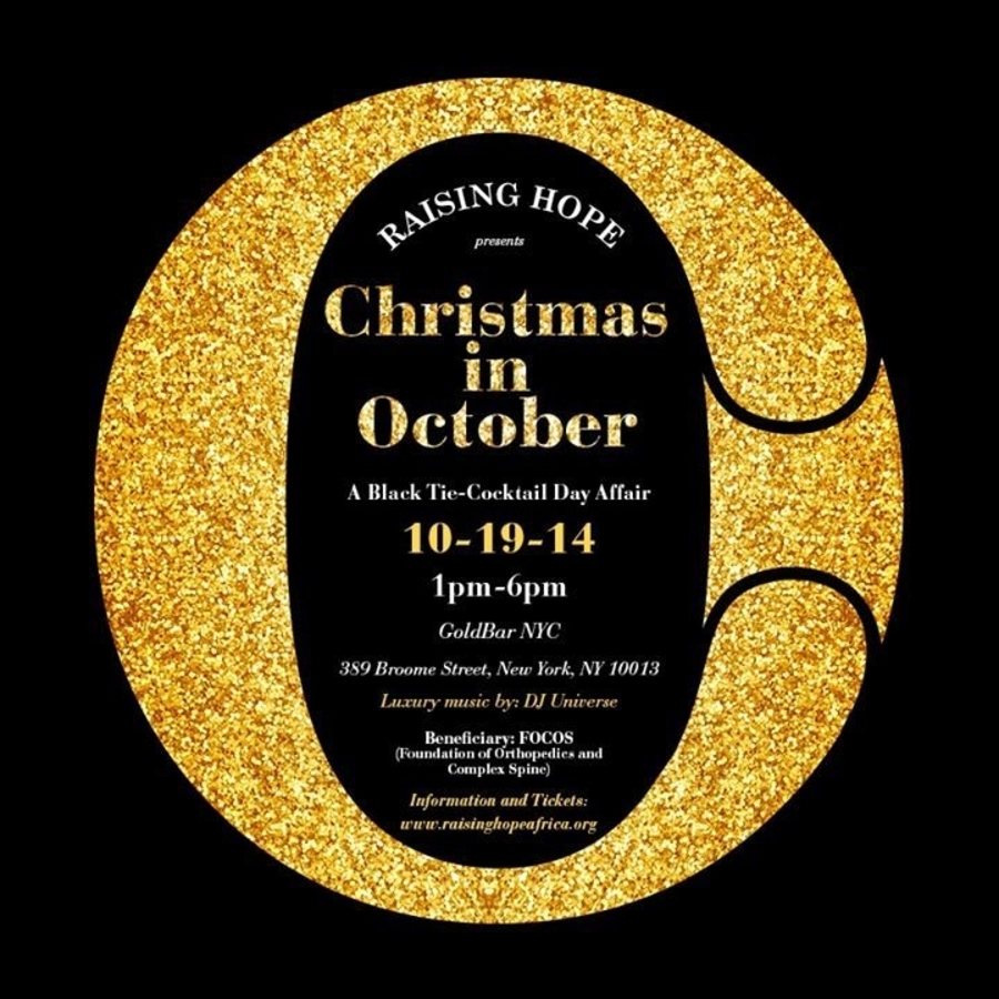 It's that time of year again!! Christmas in October 2014! This year’s event will be held on Sunday, October 19, 2014 at the Gold Bar in New York, NY from 1 PM to 6 PM. Luxury Music by DJ UNIVERSE
