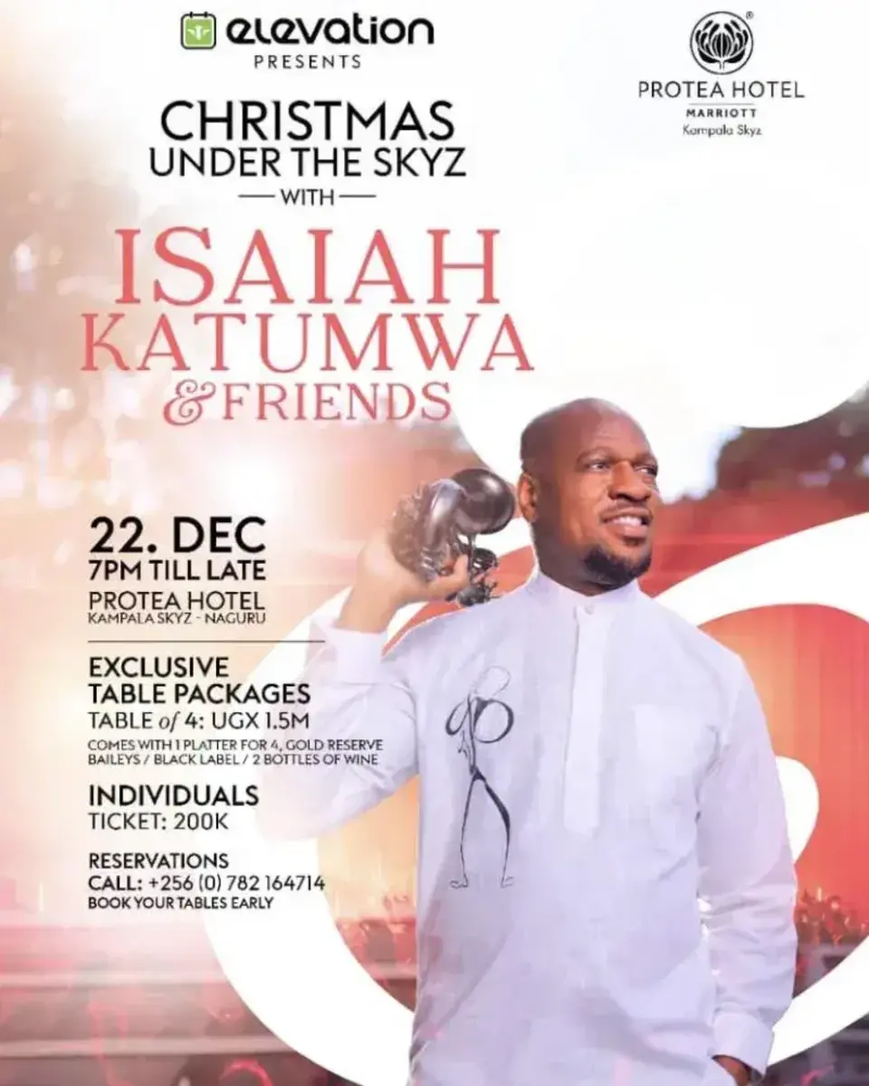 Experience the magic of the holiday season with Christmas Under The Skyz, a spectacular music and concert event in Kampala. Join the renowned Isaiah Katumwa and friends for an unforgettable evening filled with soulful melodies and festive cheer. This is your chance to immerse yourself in a celebration of music and togetherness under the starry Ugandan sky.