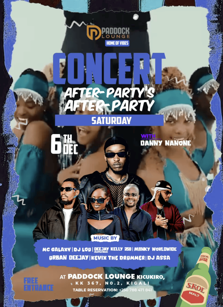 Get ready for an epic night of pure energy! Experience the ultimate Concert After-Party's After-Party at Paddock Lounge, the heart of Kigali's vibrant nightlife. Feel the thrill as Danny Nanone takes the stage with electrifying performances that will leave you mesmerized. Dance the night away with top-tier mixes and live drumming from an incredible lineup including MC Galaxy, DJ Lou, Deejay Kelly 250, Minky Worldwide, Urban Deejay, Kevix The Drummer, and DJ Assa. It's all about good music, high energy, and unforgettable vibes!