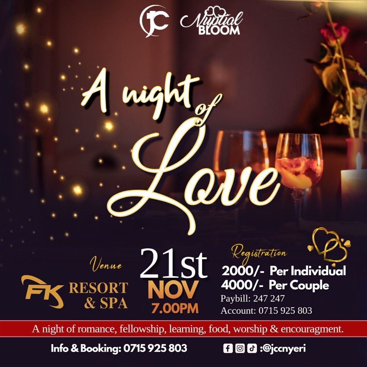 β¨ Escape for an enchanting evening of romance and connection! Join us at FK Resort & Spa for a special Couples Dinner that promises an unforgettable experience. Indulge in delicious cuisine, enjoy beautiful surroundings, and create memories with your loved one. Whether celebrating a milestone or just enjoying quality time, this event is perfect for couples seeking a romantic night out. π·πΉ Donβt miss out on this intimate culinary journey designed to bring hearts closer. Dress code is elegant casual β come ready for a night of love and luxury! πβ¨