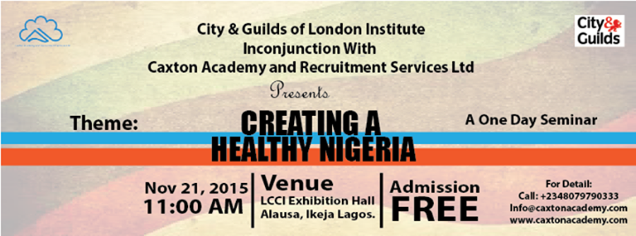 City and Guilds of London Institute in conjunction with Caxton Academy is presenting one day seminar/workshop to enhance healthy Nigeria.