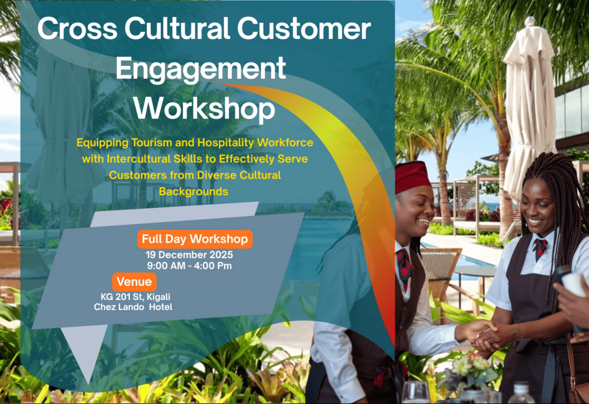 Designed for the hospitality and tourism workforce, this workshop equips participants with intercultural skills to read cultural cues, adapt service styles, and deliver world-class, guest-centered experiences to anyone, from anywhere. If you're in the tourism and hospitality industry in Rwanda, this is an unmissable opportunity to elevate your professional game.