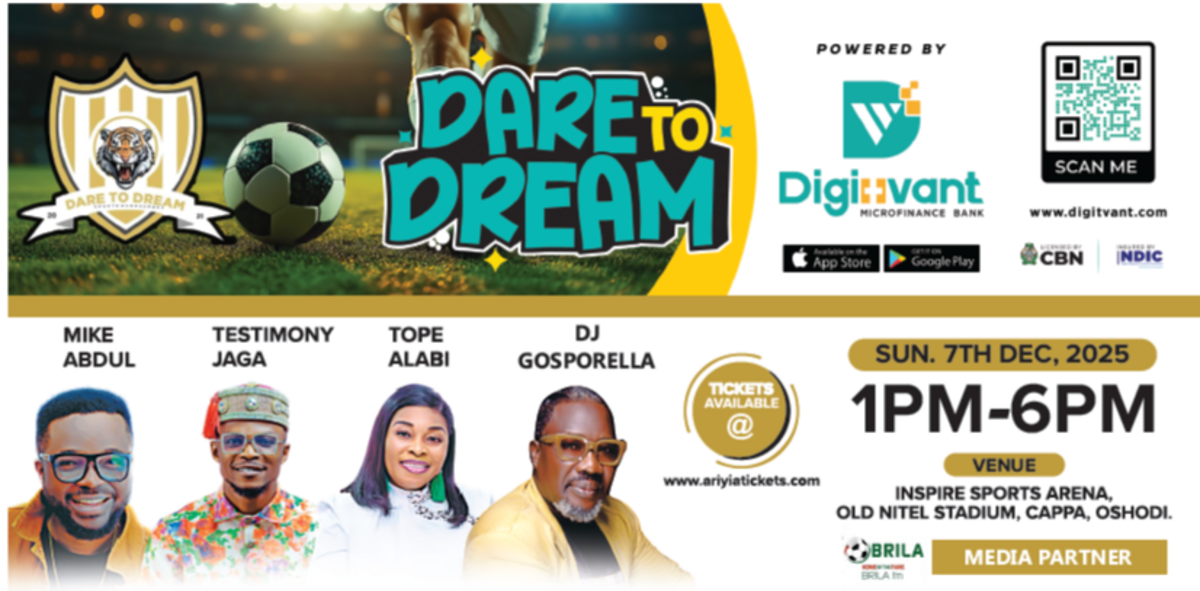 Get ready for an electrifying experience at the 2025 Digitvant Microfinance Bank Dare 2 Dream Championship Grand Finale! This isn’t just a football competition; it’s the launchpad for Nigeria’s next superstar. Witness raw talent transform into iconic potential as global football scouts, including Pablo Sanchez from Cádiz FC (Spain) and Matheus Orelas from Santa Clara FC (Portugal), scout for the brightest stars. The event culminates with the soul-stirring Dare 2 Dream Championship Grand Finale Praise Jam, featuring performances by Tope Alabi, Testimony Jaga, and Mike Abdul. With bouncing castles, games, and fun activities for kids, this is a vibrant family celebration of sport and spirit!