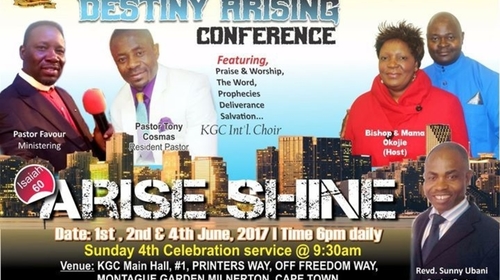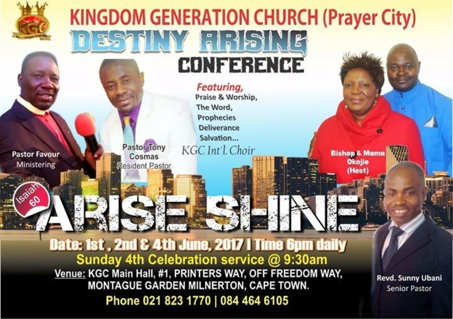 Destiny Arising conference is a WORD Revelation Encounter, which exists to teach, Strengthen and release a community of Kingdom minded people to complete their purpose(s) and preach the gospel of the Kingdom of CHRIST. To be Empowered and Confidently pursue and fulfill your destinies in ALL spheres of Influence. God is releasing His mighty people into all areas of influence: Faith, Government, Family, Business, Education and Careers BE BOLD TO SAY I am a Mighty Warrior on the Front Line of Battle, Anointed to Re-Take Territory from the Enemy. I am a Teacher who breaks old mindsets and cycles, and educates others to enable them to fulfill their destinies. I am Prophetic, receiving ideas and solutions from the Heavenly Realm and releasing them into the Natural Realm