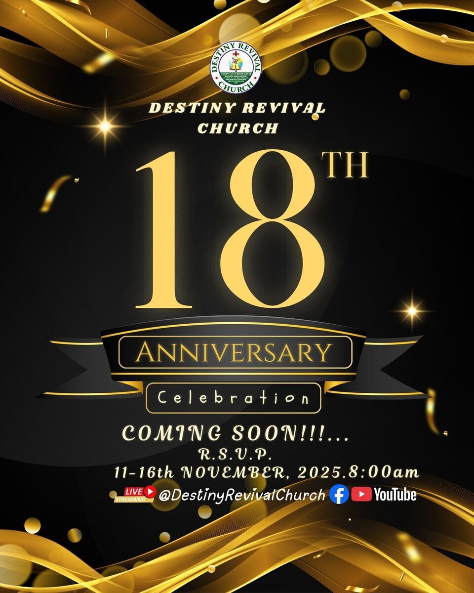 Join us at DESTINY REVIVAL CHURCH for a powerful spiritual gathering designed to reignite your faith and renew your purpose. Experience inspiring sermons, uplifting worship, and a vibrant community coming together to celebrate divine revival.β¨ Whether you're seeking spiritual growth or community fellowship, this event promises an atmosphere filled with hope, love, and divine energy. Donβt miss this opportunity to be part of a transformative experience that could change your life. π