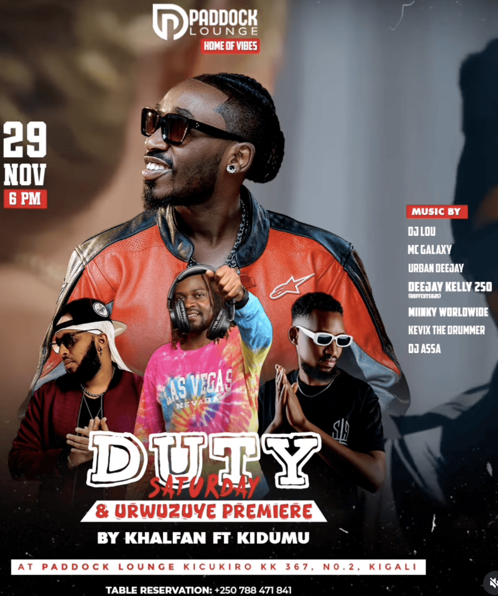 Get ready for an electrifying night at Duty Saturday – Home of Vibes Edition! Immerse yourself in a pulsating atmosphere filled with music, energy, and unforgettable moments. Experience non-stop hits and live performances from an incredible lineup of local talents, including Deejay Kelly250 (RuffcutsDJs), Miinky Worldwide, DJ Lou, MC Galaxy, Urban Deejay, and Kevix the Drummer. It's the ultimate weekend vibe you don't want to miss!