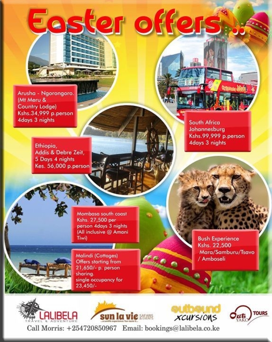 Easter provides that perfect time to get away with family, friends, colleagues and even fellow random travelers. You explore the world, build stronger relationships and even forge new ones, how about you do that in a way that leaves you wanting for more. Join us this Easter to the bush, to the beach, to Ethiopia, to Dubai, To Ngorongoro, to Zanzibar, for adrenalin, for fun, for wild game...