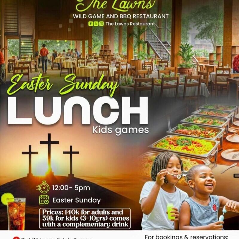 Gather your loved ones and celebrate Easter with delicious food, refreshing drinks, and unforgettable moments at Lawns Restaurant Kololo! 🎊✨ Reserve your table now and let’s make this Easter extra special! 🐰🥂