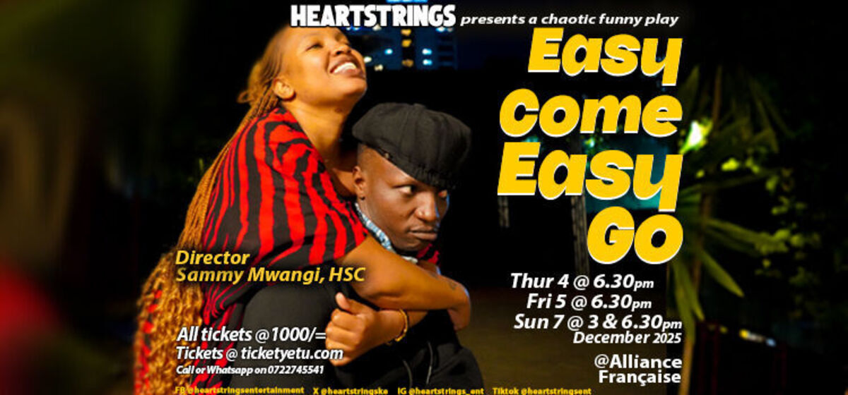 Get ready for a weekend of laughter with Easy Come Easy Go, a rib-cracking stage play that promises to leave you in stitches. Heartstrings Kenya brings this hilarious production to life, offering a perfect blend of humor and entertainment. Don't miss out on this unforgettable theatrical experience!
