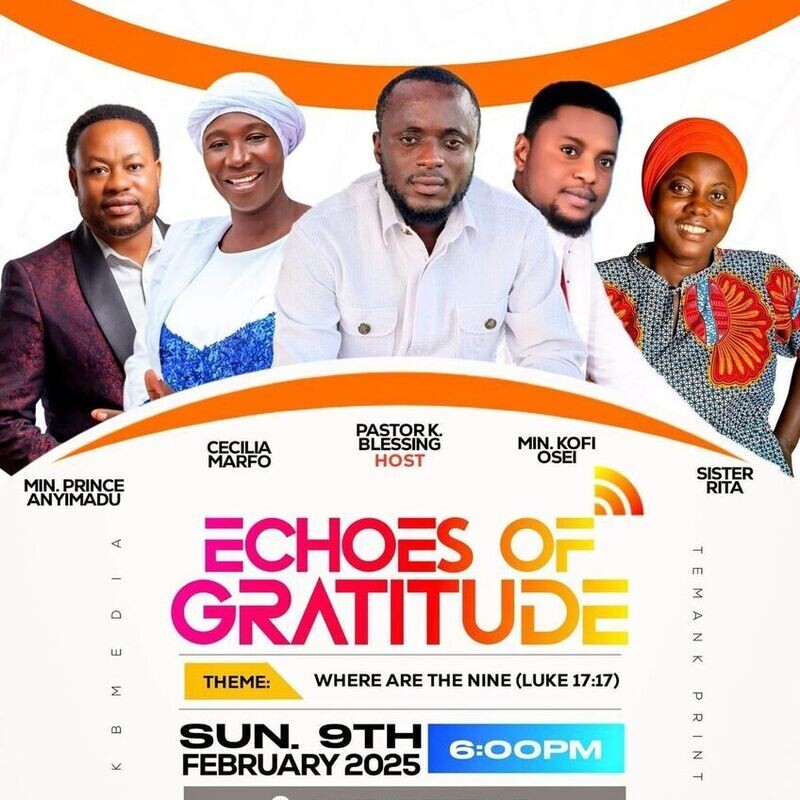 Join us for a night of worship, thanksgiving, and revival! 🎉 Experience an uplifting evening filled with spiritual music and heartfelt gratitude. This incredible event will feature amazing ministers of God, including Cecilia Marfo, Min. Prince Anyimadu, Min. Kofi Osei, and Sister Rita. Don't miss the chance to be inspired and uplifted in faith, hosted by Pastor K. Blessing.