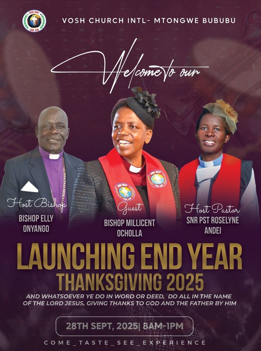 Join us in celebrating the culmination of the year with a heartfelt Thanksgiving event hosted by VOSH Church Mtongwe-Bububu Assembly. This special gathering is an opportunity to give thanks to God for His protection, guidance, faithfulness, and provisions throughout 2025. The event features inspiring messages, communal prayers, and a spirit of gratitude that unites everyone in worship and fellowship. Whether you attend physically or virtually, this celebration promises to be uplifting and memorable. Come with an open heart to express your gratitude and receive blessings for the year ahead! 🙏🎉