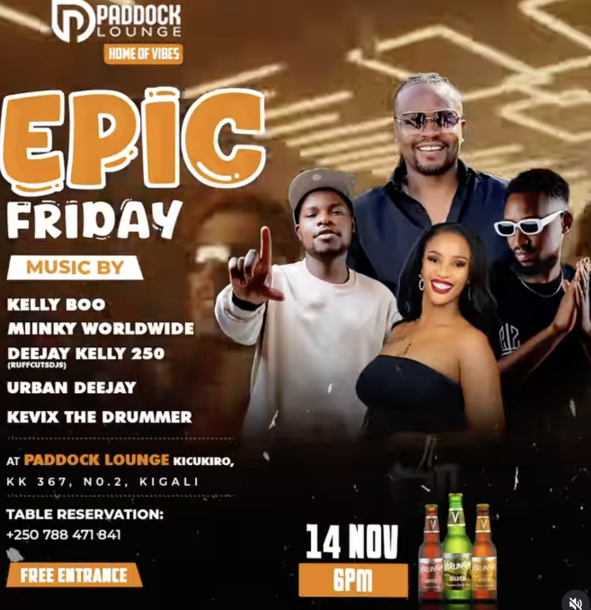 🎶 Epic Friday promises an electrifying night filled with vibrant music, energetic vibes, and unforgettable moments! Hosted at the iconic Paddock Lounge, Kicukiro, this event is the ultimate destination for nightlife enthusiasts seeking a night of entertainment, dancing, and socializing. Expect a stellar lineup of top DJs and live performances that will keep you moving all night long. Whether you're a music lover or just looking for a great time, Epic Friday is where the party comes alive! 💃🕺