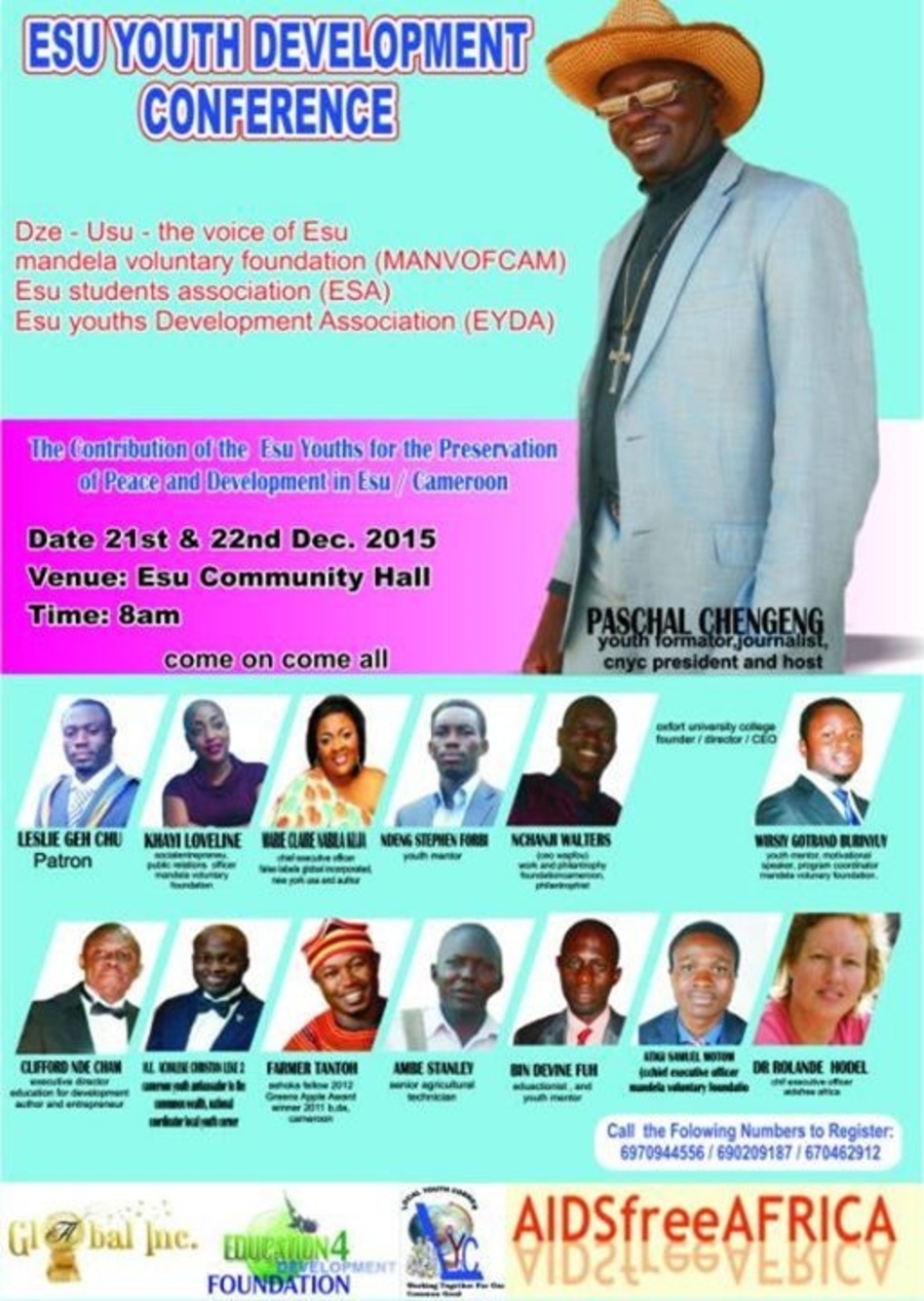The Mandela Voluntary Foundation Cameroon (MANVOFCAM) together with the ESU student’s Association and the ESU youths Development Association are delighted to invite you to be part of a two days seminar schedule to take place in the ESU fondom from the 21st to the 22nd of December 2015 in the ESU community hall under the theme ‘’the contribution of the ESU youths (students) for the preservation of peace and development in ESU\Cameroon’’.