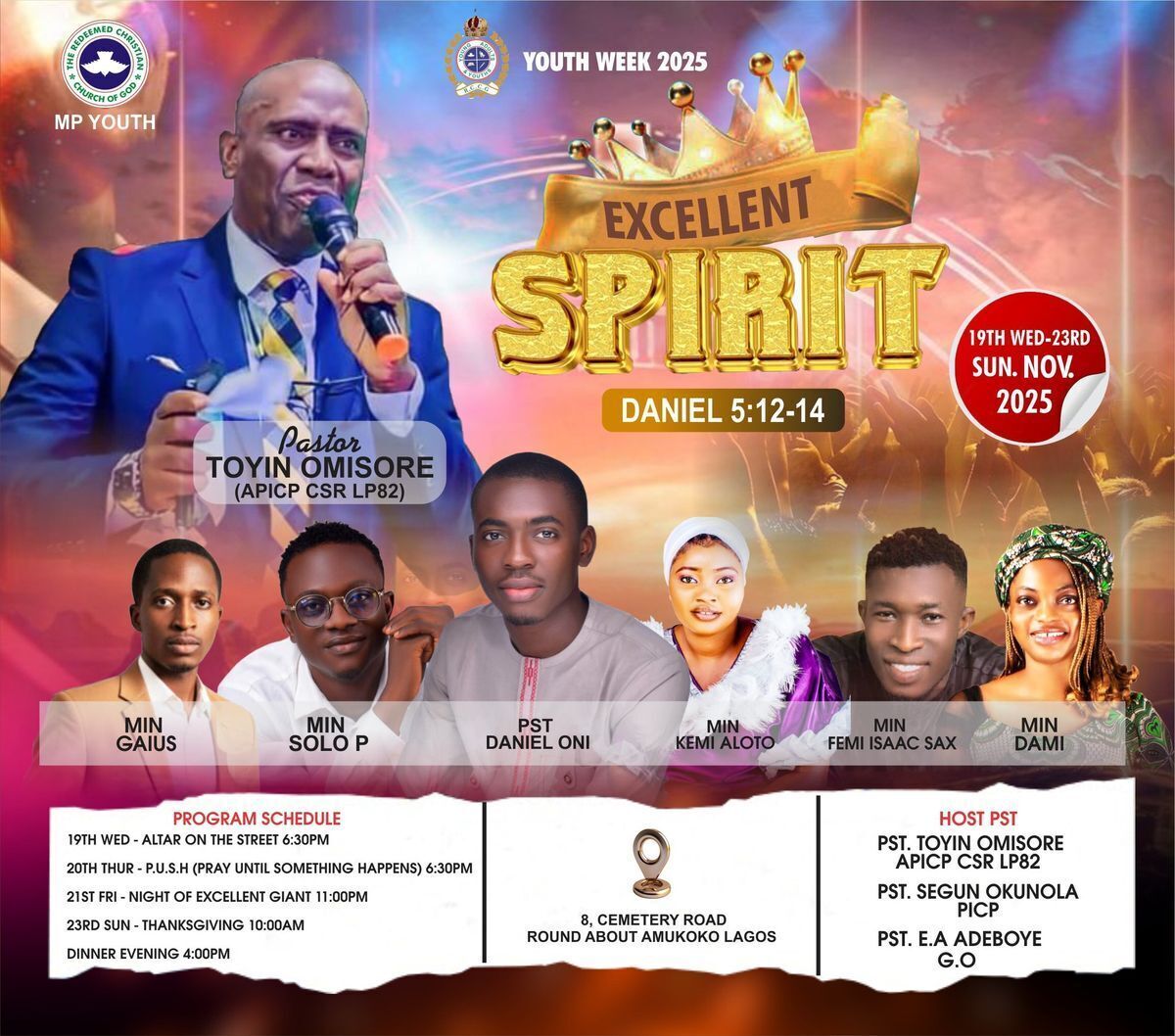๐จ Get ready to unlock your full potential! ๐จ๐ฅ Messiah's Place Youth Week 2025 is here! Tag ๐ฅExcellent Spirit๐ฅ and join us for an unforgettable experience. It's your set time to shine! Are you prepared to create lifelong memories with friends and loved ones? We'll come together to worship, pray, and praise in a way that will leave you empowered. ๐ฅ๐ฅ Check the flyer for more details! ๐ฅ๐ฅ