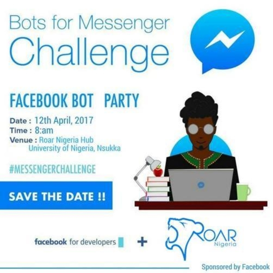 Roar Nigeria in collaboration with Facebook is organizing a facebook bot party aimed at training and equiping developers with necessary tools, knowledge and resources required to build a facebook chat bot