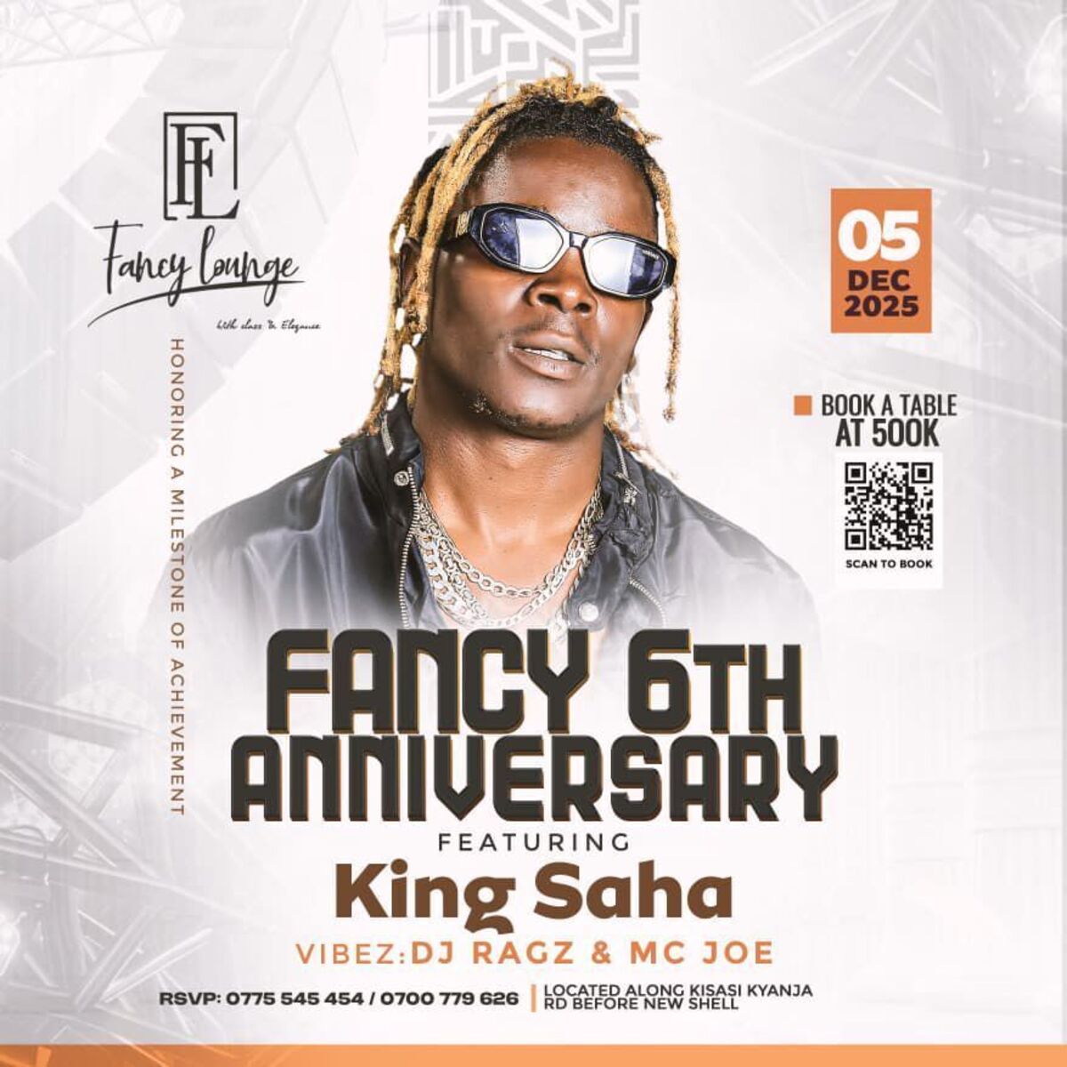 Celebrate six incredible years at the Fancy 6th Anniversary bash! Get ready for an electrifying night filled with music and entertainment, featuring the sensational King Saha, the unstoppable beats of DJ Ragz, and the dynamic hosting by MC Joe. This is the ultimate party to mark a milestone, promising a vibrant atmosphere and unforgettable memories.