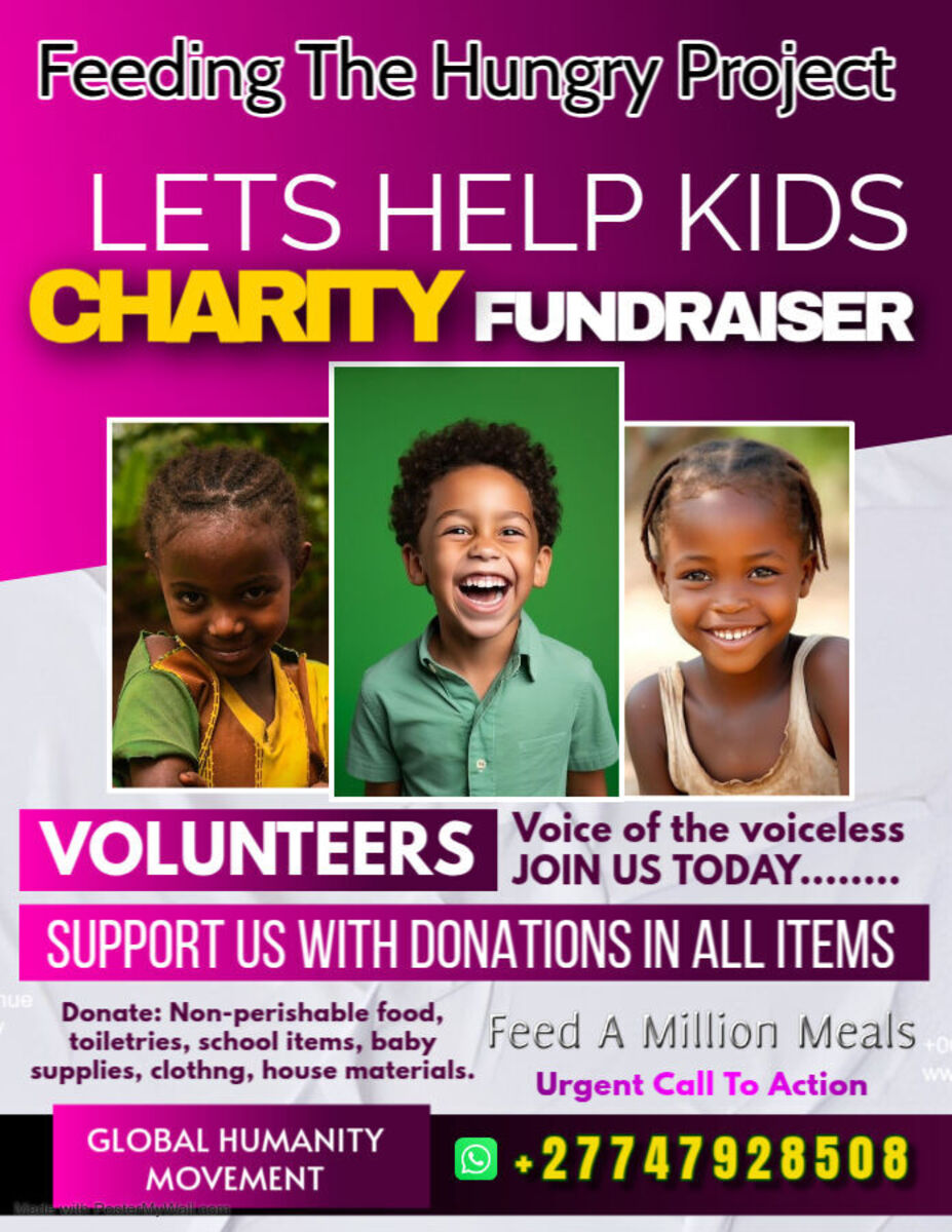 Humanity and Kindness Charitable Voluntarily Voice of the Voiceless Fundraising Event | Donate, Support Us: Call /WhatsApp: +27747928508 Ending Child Starvation, Supporting HIV/Aids Orphans, Helping the Community Access Cleaner and Safe Running Water and Those Who Struggle With Accommodation. Lets Help