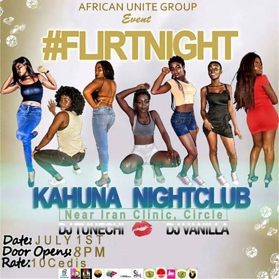 FlirtNight is 100% flirtatious night inside the plush Kahuna nightclub. Come mingle, have fun and flirt. You might get hooked up at the end of the night.