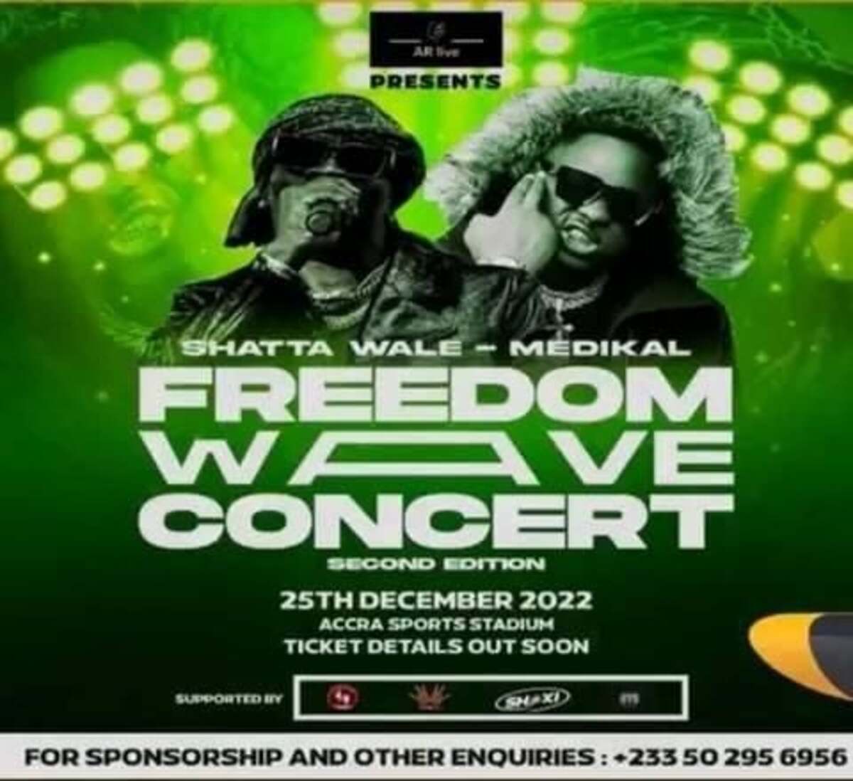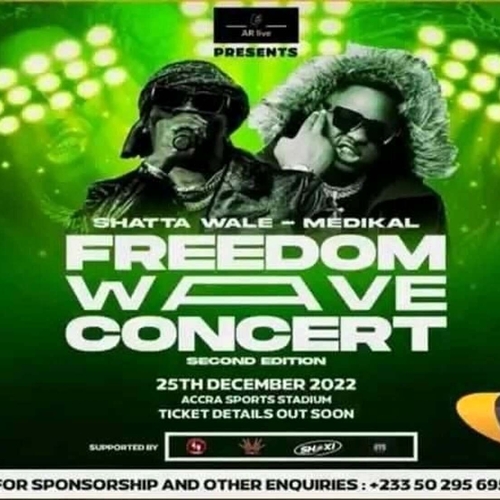 The Second Edition of #FreedomWaveConcert Comes off on 25th December 2022 at the Accra Sports Stadium. With Shatta Wale and Medikal.